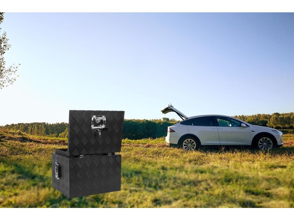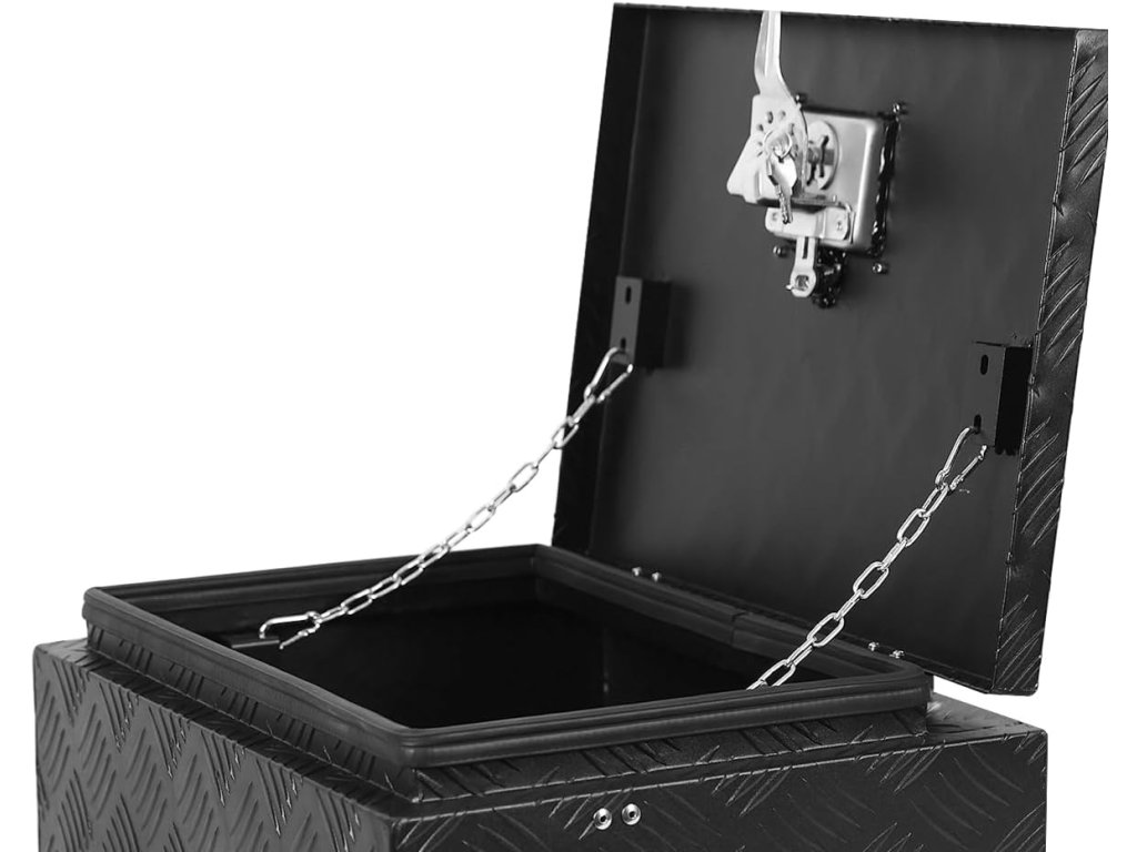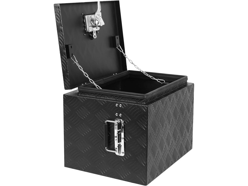 KIMORE 18" hliníkový box na nářadí (46x46x42 cm), černý, odolný, s T-zámkem a klíči, pro nákladní vozy, karavany, přívěsy.
