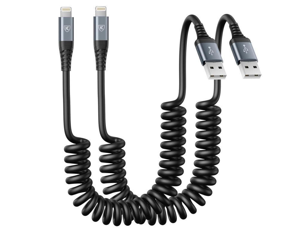 KIYODA Coiled Lightning Cable je stáčený pružinový nabíjecí a datový kabel pro Apple zařízení (iPhone iPad AirPods) s certifikací MFi.