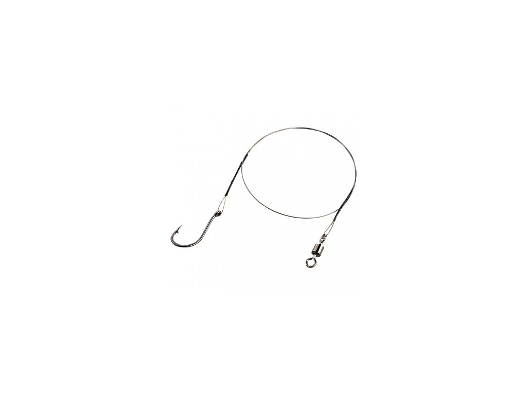 Kompletní montáž Každý návazec je vybaven pevným jednoháčkem a obratlíkem. Obratlík zajišťuje volné otáčení nástrahy a lanka, čímž minimalizuje kroucení vlasce.