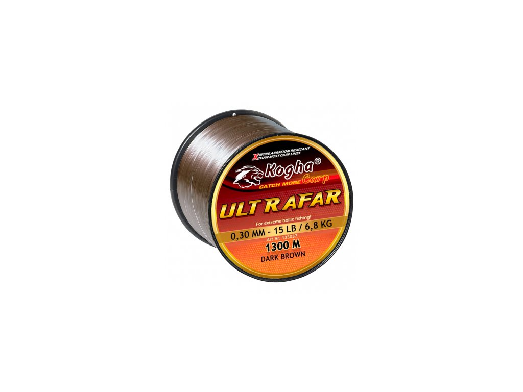 Kogha Fishing Line Carp Ultrafar v hnědé barvě je vysoce kvalitní vlasec s nízkou pamětí a vynikající odolností proti oděru. Je ideální pro lov kaprů, a to jak pro zdolávání ryb, tak pro daleké náhozy. K dispozici v průměru 0,40 mm s nosností 25 LB a délkou 730 m.