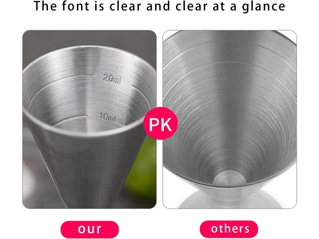 Tato koktejlová odměrka je navržena pro profesionální barmany i domácí nadšence. Je vyrobena z vysoce kvalitní potravinářské nerezové oceli 304, která je robustní, odolná proti korozi a vhodná do myčky nádobí. Dvouhlavý design s jednodílnou konstrukcí zajišťuje perfektní vyvážení mezi prsty a široký otvor usnadňuje nalévání tekutin.