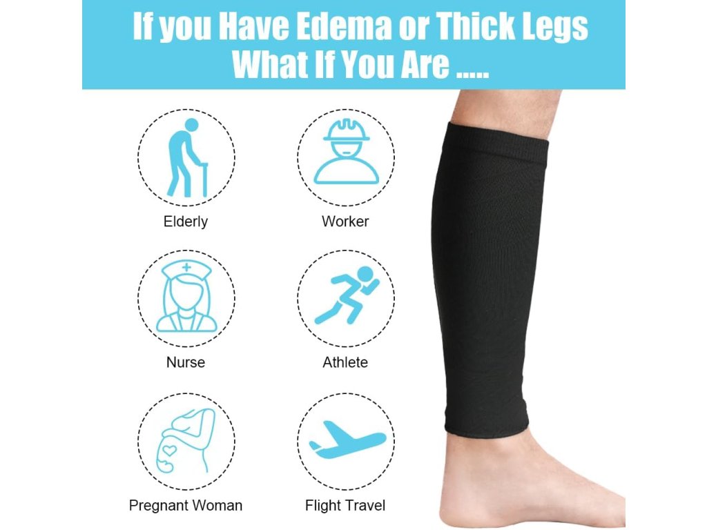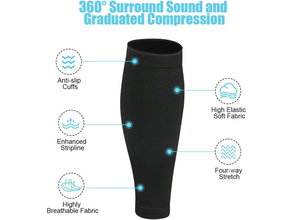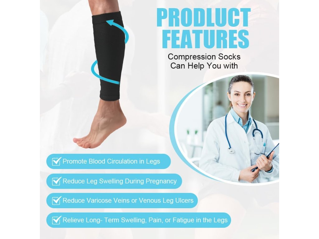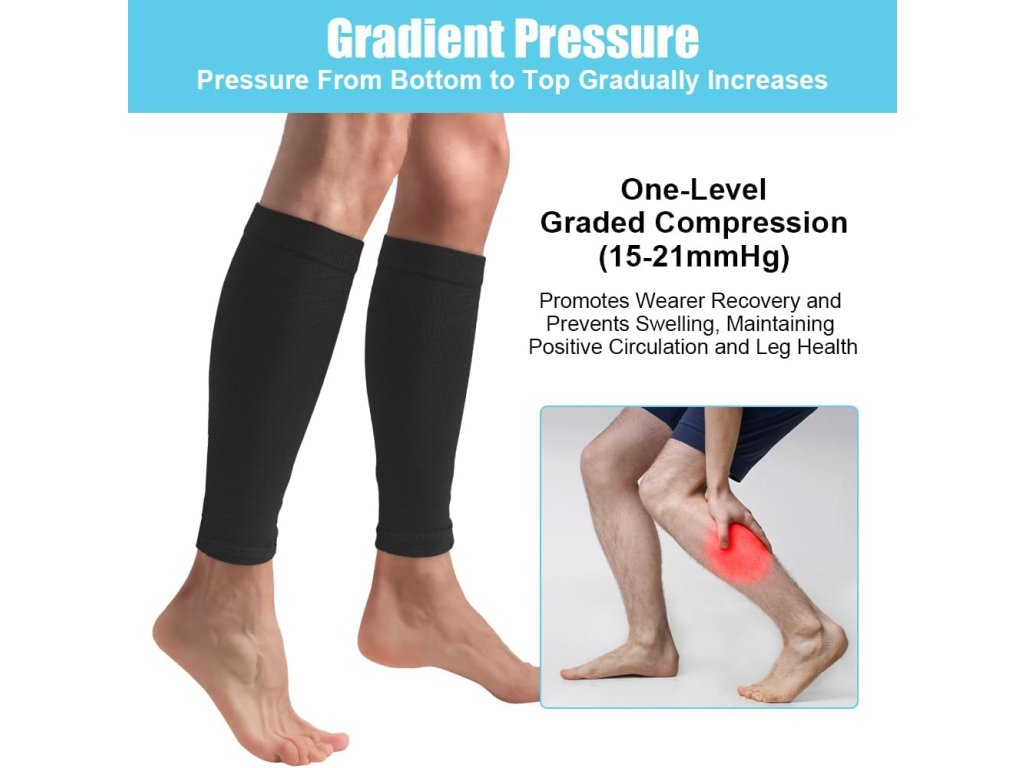 Úleva od bolesti lýtek: Tyto kompresní návleky na lýtka účinně snižují bolestivost a otoky nohou, svalovou únavu a poskytují maximální komfort. Pomáhají zmírnit bolest spojenou s natažením, podvrtnutím, holenními dlahami a napomáhají při rekonvalescenci po zranění lýtek, křečích v nohou nebo problémech s holenními dlahami.