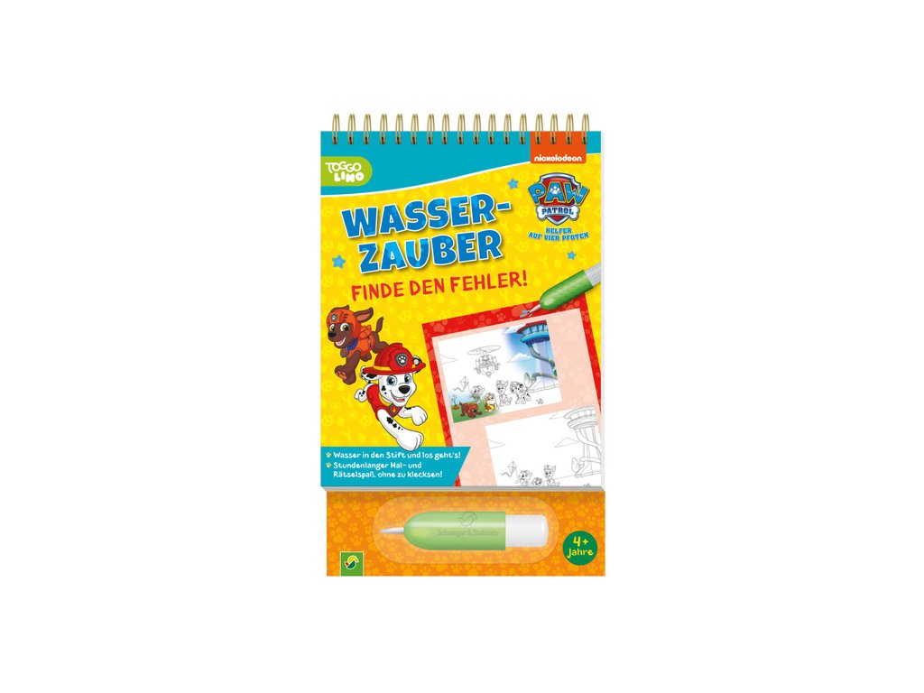 Tlapková patrola Vodní magie Najdi chybu. Kouzelné omalovánky a puzzle s vodním perem pro děti od 4 let. Hledej chyby, vybarvuj vodou, opakovaně použitelné.