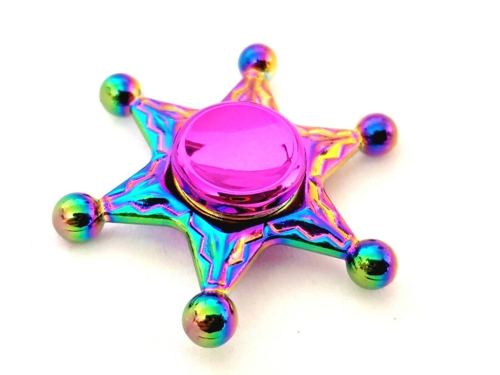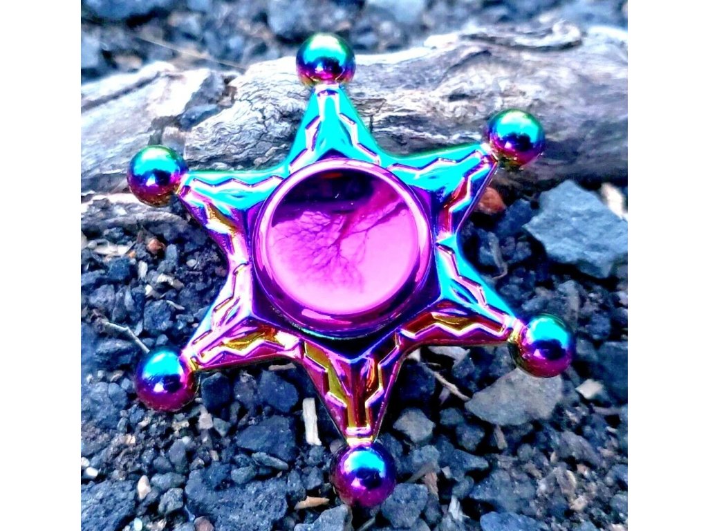 Kovový fidget spinner duhový hvězda šerifa