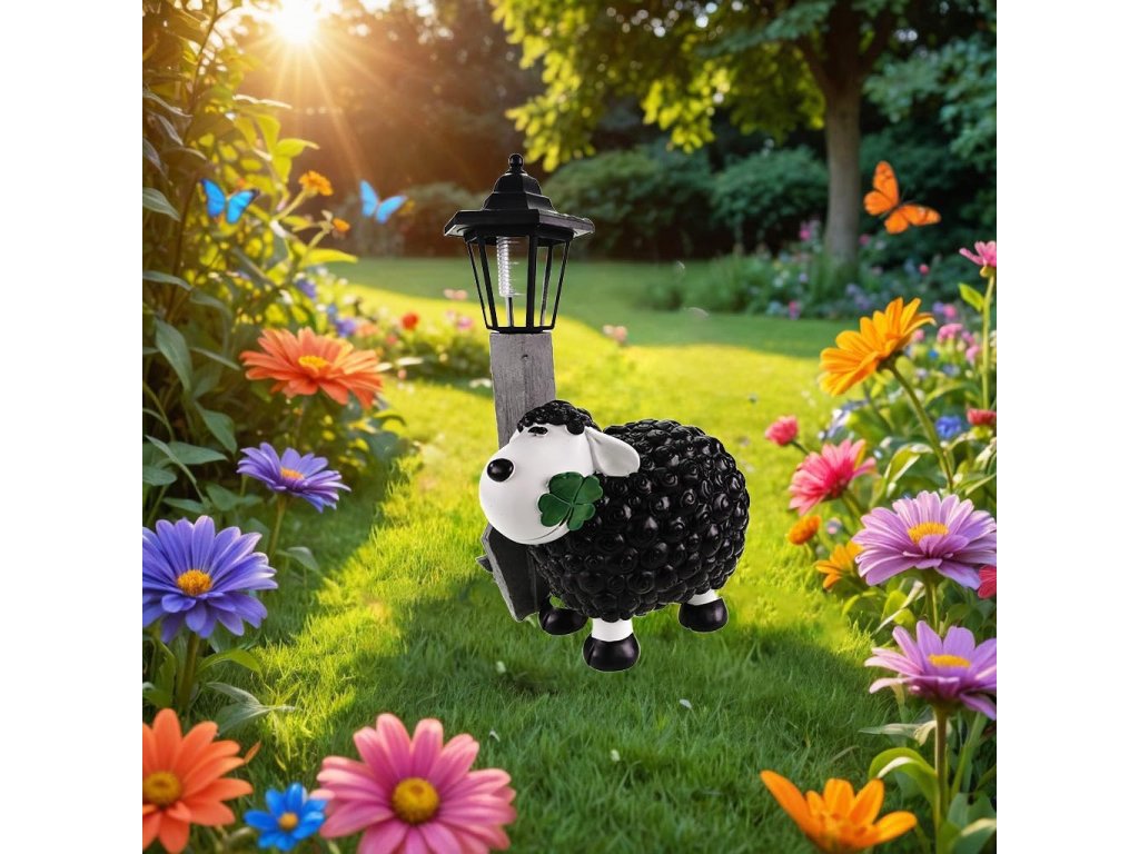 Černá ovečka Molly z Kremers Schatzkiste je originální zahradní dekorace, která potěší každého. V ústech drží čtyřlístek pro štěstí a opírá se o sloupek s LED solární lucernou. Lucerna se automaticky zapíná za soumraku a vypíná za denního světla, s možností manuálního ovládání. Figurka je vyrobena z kvalitního a odolného polyresinu s detailní strukturou a barvou. S rozměry cca 36 x 15 x 10 cm a váhou 1,5 kg se skvěle hodí do každé zahrady, na terasu či k jezírku. Molly je také skvělým a humorným dárkem pro vaše blízké.
