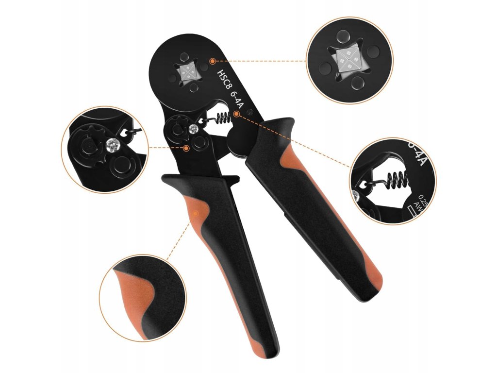 Tyto krimpovací kleště jsou vyrobeny z vysoce uhlíkové oceli s voděodolným a korozivzdorným povrchem. Disponují přesným ráčnovým mechanismem se 4 vřeteny pro rovnoměrné přitlačení a automaticky se přizpůsobují izolaci. Jejich vylepšená rukojeť zajišťuje pohodlné držení a tlumení nárazů. Jsou ideální pro elektrické opravy v dílnách, automobilovém a strojírenském průmyslu.