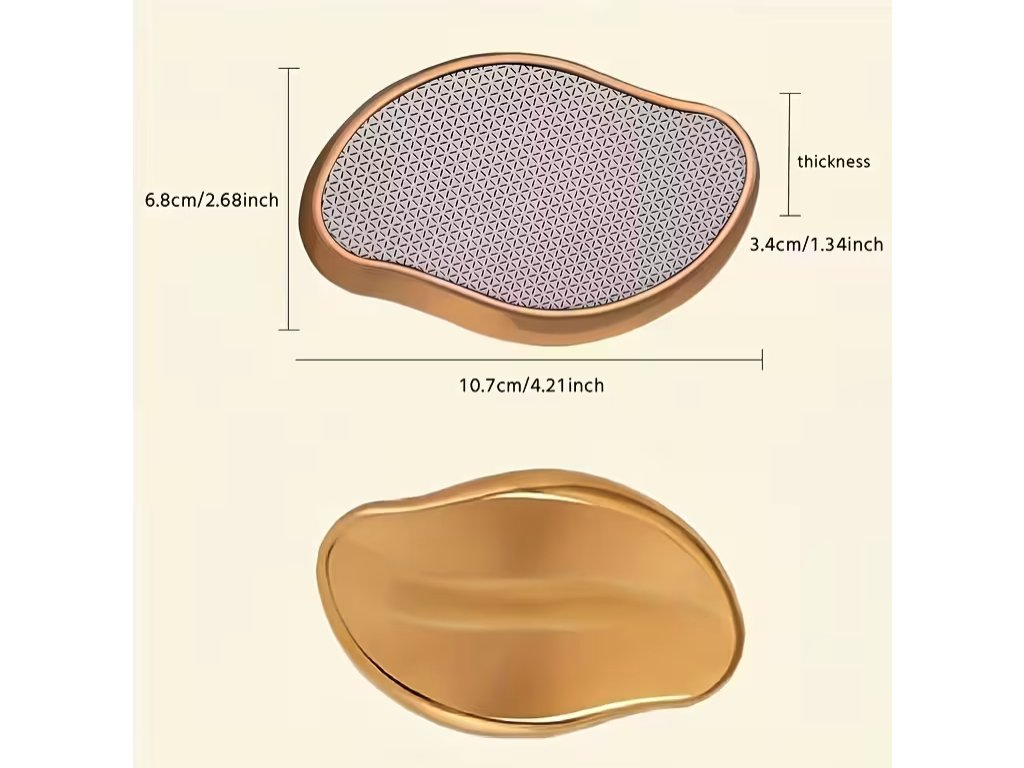 Povrch nástroje je vylepšen pro maximální bezpečnost a efektivitu, díky čemuž je proces zcela bezbolestný. Ergonomický tvar v luxusním pozlaceném provedení padne skvěle do ruky a umožňuje snadné ošetření nohou, rukou i zad. Výrobek je navržen pro opakované použití, což z něj činí udržitelnou volbu pro pravidelnou péči o tělo. Vzhledem k elegantnímu designu slouží také jako vhodný dárek pro ženy, které preferují jemnou péči o pokožku.