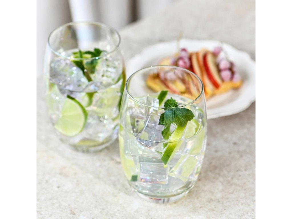 Tvar sklenic je tzv. sudovitý, což usnadňuje držení a vytváří atraktivní prvek na stole. Sklenice jsou navrženy tak, aby fungovaly ve všech typech stolování; jejich klenutý profil i jemná barevná hra působí přitažlivě bez ohledu na ostatní stolní servis.