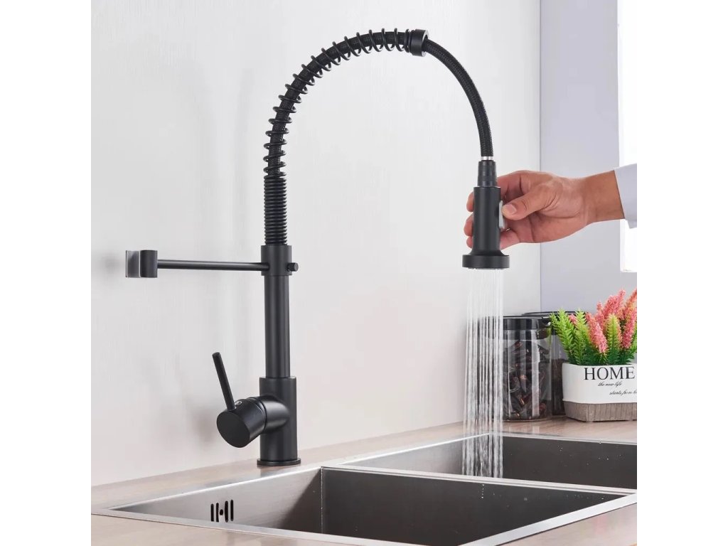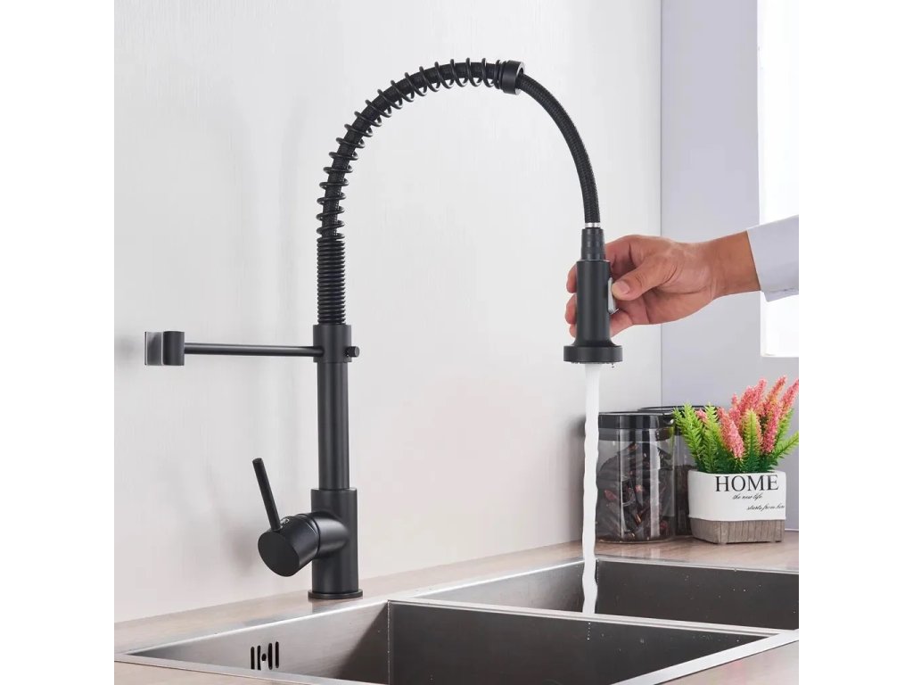 Tato baterie je navržena pro jednoduchou montáž na dřez s jedním otvorem. Tělo je vyrobeno z mosazi a nerezové oceli, což zajišťuje dlouhou životnost a odolnost. Díky vytahovací sprše je práce v kuchyni mnohem snazší, ať už oplachujete nádobí nebo myjete dřez. Dva režimy stříkání poskytují flexibilitu pro různé úkoly a otočné ramínko o 360° zajišťuje maximální dosah.
