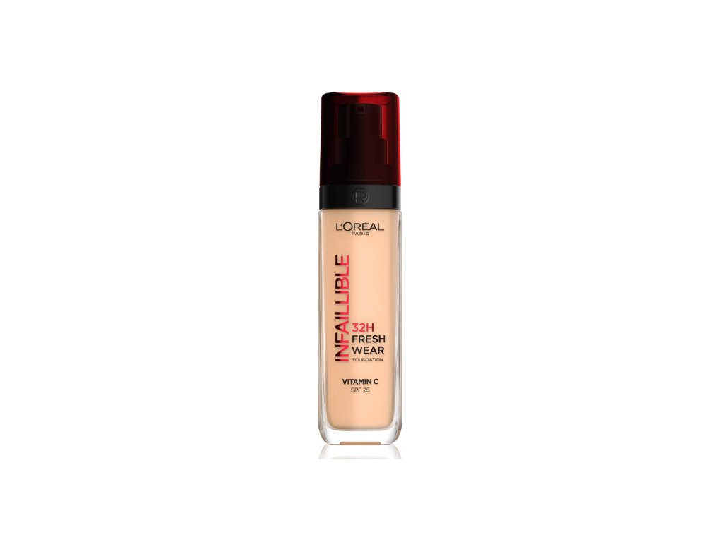 L’Oréal Paris Infaillible 32H Fresh Wear je dlouhotrvající tekutý make-up s lehkou konzistencí a SPF 25, který vydrží na pleti po celý den. Je vhodný pro všechny typy pleti a zajišťuje střední až vysoké krytí pro přirozený a svěží vzhled.