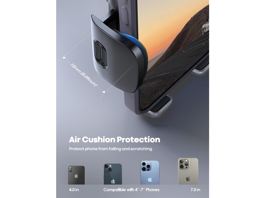 Tento držák nabízí handsfree řešení pro bezpečné a pohodlné používání telefonu v autě s důrazem na stabilitu a jednoduchost instalace. Držák využívá automatický elastický pružinový klip a kovový hák pro instalaci během 1 sekundy bez nutnosti opakovaného nastavování. Hák se automaticky uzamkne ve větrací mřížce. Stabilní trojúhelníková konstrukce spolu s kovovým hákem zajišťuje pevné uchycení. Samovytahovací pružinový hák nepoškodí lamely ventilace. Rozsah vysunutí háku je 11 mm–23 mm. Není vhodný pro kulaté větrací otvory pouze pro vertikální nebo horizontální mřížky. Vhodný pro všechny chytré telefony s úhlopříčkou 4–7 palců i s tlustými nebo peněženkovými pouzdry.