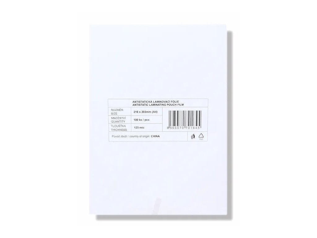 Laminování je skvělý způsob, jak chránit papíry před vlhkostí, znečištěním a mechanickým poškozením. Balení obsahuje 100 kusů a jeho celková hmotnost je 1,35 kg.