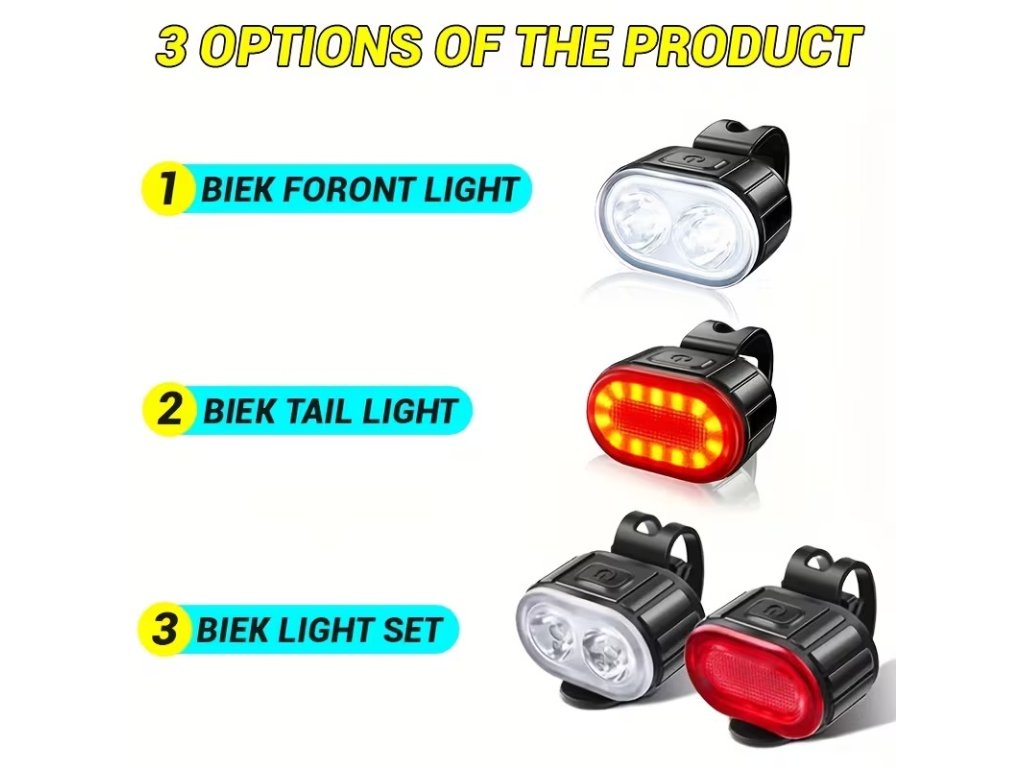Tato sada poskytuje spolehlivé a jasné osvětlení pro zvýšení bezpečnosti při jízdě na kole za snížené viditelnosti. Díky možnosti dobíjení přes USB je používání ekonomické a pohodlné. Univerzální design umožňuje snadné připevnění na kolo nebo helmu a využití i při jiných outdoorových aktivitách.