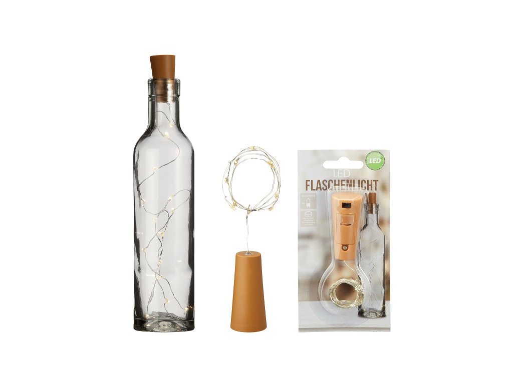 LED osvětlení lahve s osmi teplými bílými LED diodami je ideální pro vytvoření příjemné atmosféry. Osvětlení má délku cca 100 cm a je dodáváno včetně tří baterií LR44.