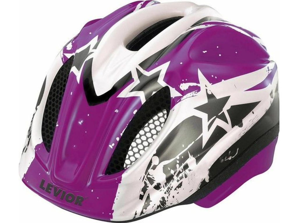 Technické parametry: Výrobce: Levior Model: Primo Violet Stars Barva: Fialová (lila) s motivem hvězd Velikost: M Obvod hlavy: 52–58 cm Hmotnost: 280 g Ventilace: 5 vzduchových kanálů Zapínání: QuickSafe s Rastersteckschloss (patentní patentka) Bezpečnostní prvky: Zadní blikající světlo reflektory síťka proti hmyzu