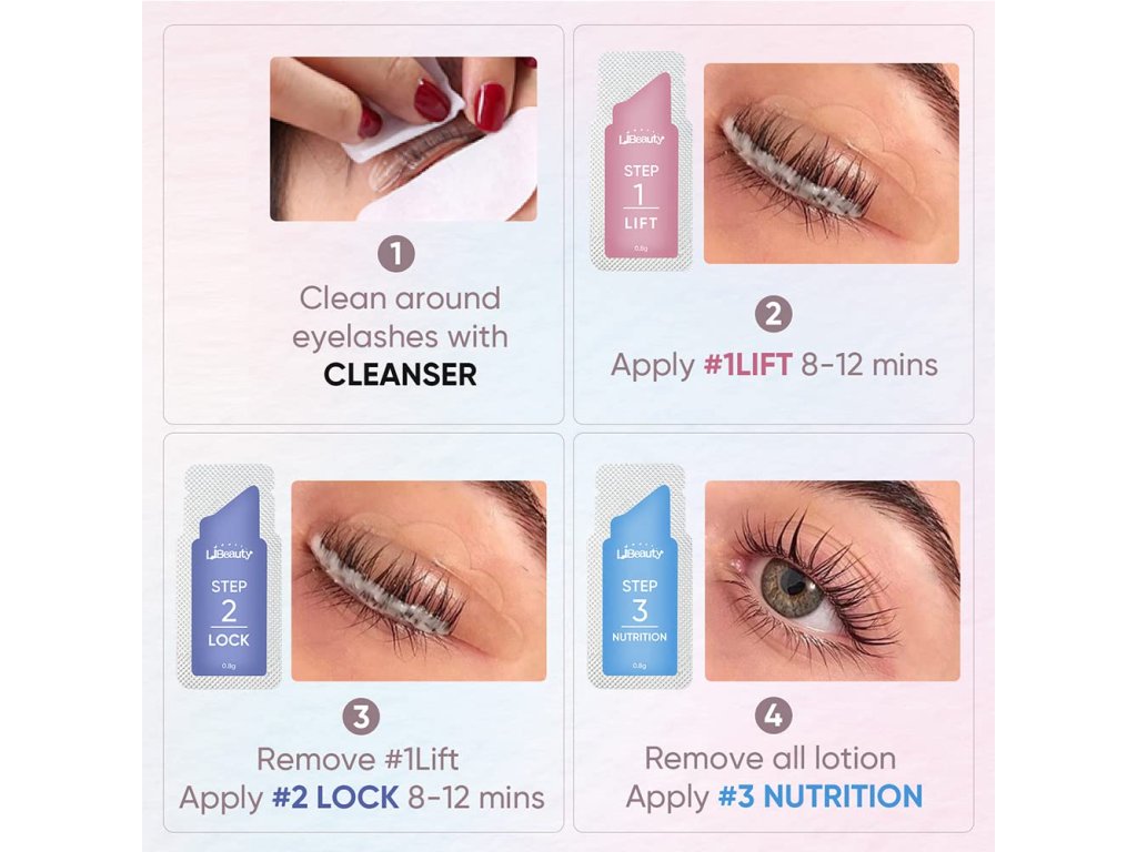 Každé balení obsahuje pět sáčků s přesnou dávkou přípravků: perming lotion, fixační lotion, výživu a ochranu pokožky. Toto individuální balení zajišťuje maximální hygienu a čerstvost produktu. Sada se snadno používá a s trochou úsilí vytvoříte elegantní a bezchybně natočené řasy, které oživí váš pohled.