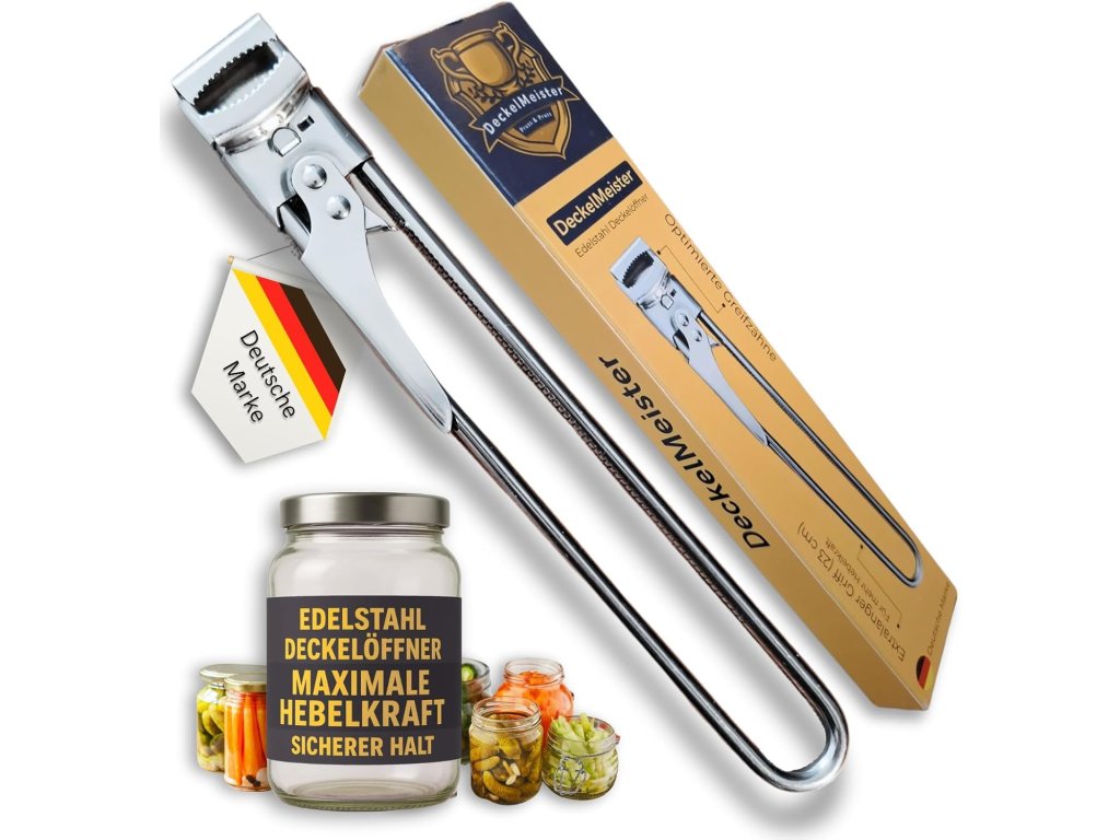 Maximální Pákový Efekt: Díky extra dlouhé rukojeti (páce) umožňuje otvírat i pevně uzavřené šroubovací sklenice a víčka bez velké námahy.