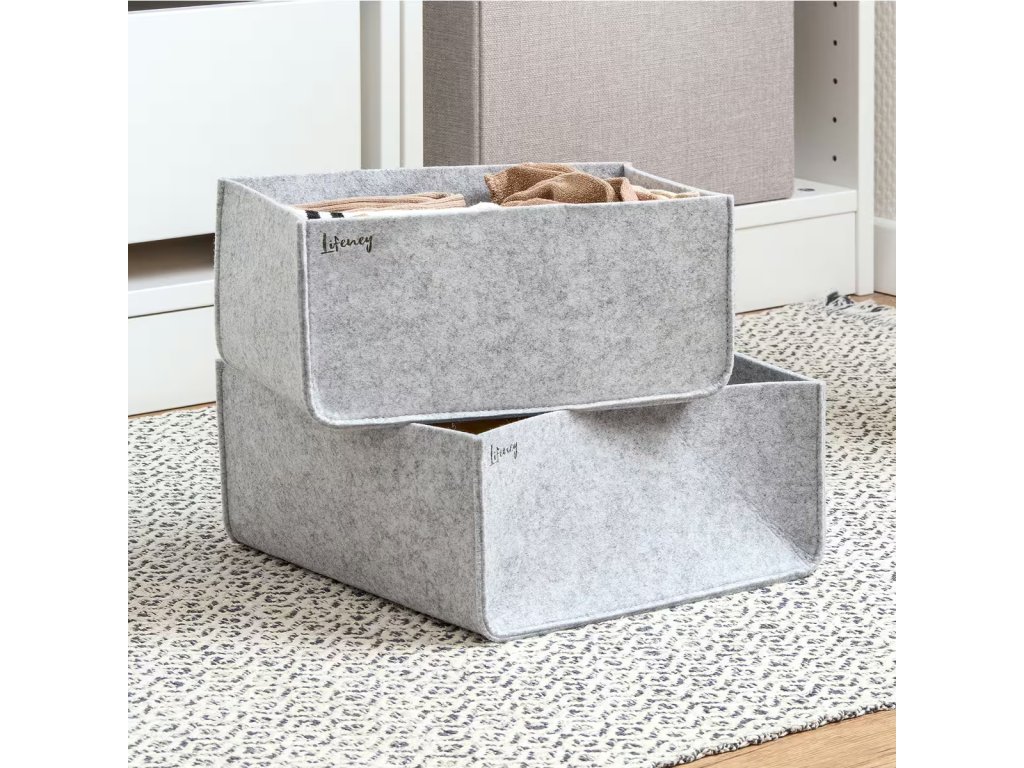 Sada dvou plstěných organizérů do zásuvek Lifeney usnadňuje úklid a pomáhá udržet pořádek v dětském oblečení, hračkách nebo plyšácích. Tyto úložné boxy jsou vyrobeny z měkkého a flexibilního plstěného materiálu a nabízejí dostatek úložného prostoru pro širokou škálu použití.