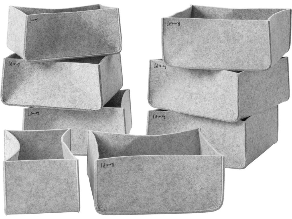 Lifeney Sada úložných boxů 8 kusů (6x 12x27x25 cm, 2x 12x27x15 cm) z plsti pro organizaci skříně