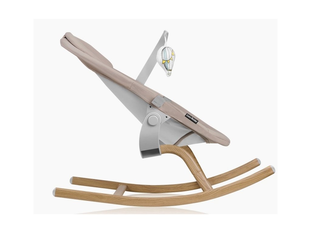 Konstrukce kombinuje lehké materiály s přírodním dřevem, které díky své unikátní struktuře dodává každému kusu originální vzhled. Houpátko nabízí tři polohy sklonu sedáku a výškově nastavitelný polštářek pro optimální pohodlí. O bezpečnost se starají 3bodové pásy a stabilní základna. Součástí je také hrazdička s hračkou, která upoutá pozornost dítěte a pomáhá rozvíjet jeho motorické schopnosti. Díky velmi nízké hmotnosti a jednoduché montáži bez použití nářadí je houpátko snadno přenosné a připravené k použití kdekoli v domácnosti.