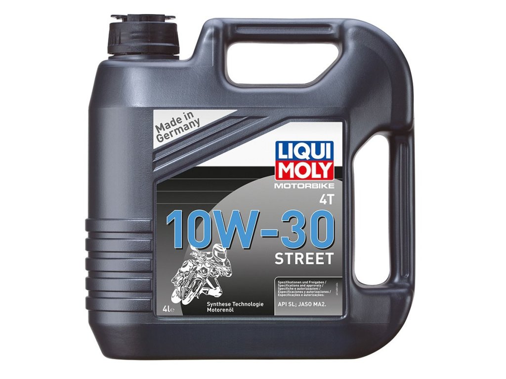 Polosyntetický motorový olej LIQUI MOLY Motorbike 4T 10W30 Street je speciálně vyvinut pro celoroční použití v vzduchem i vodou chlazených čtyřtaktních motocyklových motorech od běžných až po velmi výkonné včetně silničních závodních a terénních strojů. Olej je také vhodný pro čtyřkolky a skútry. Olej s viskozitní třídou 10W30 je často předepisován předními výrobci motocyklů jako jsou Honda a Suzuki pro modely od roku 2010 a je testován v motorech s katalyzátory. Díky splnění norem API SL a především JASO MA2 poskytuje maximální jistotu funkčnosti mokré spojky a převodovky. Balení obsahuje 4 litry oleje.