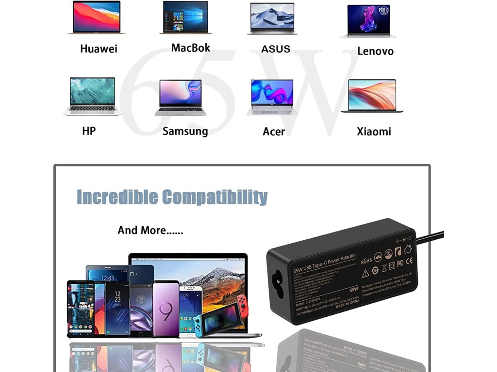 S touto nabíječkou nebudete muset mít několik různých adaptérů. Je kompatibilní s celou řadou značek a modelů, včetně Lenovo ThinkPad a Yoga, Dell, HP, Asus, Samsung, Acer a Google Chromebook. Nabíječka je robustní a spolehlivá.