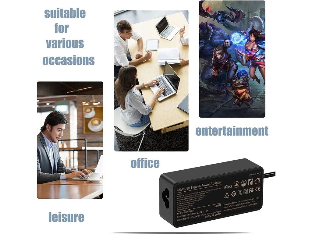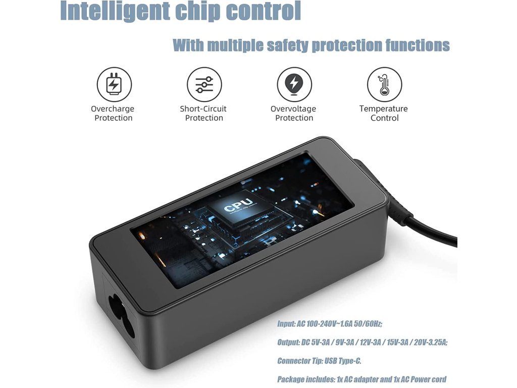 Tato 65W USB-C nabíječka LJO-EEIH je skvělá pro nabíjení notebooků, Chromebooků a dalších zařízení s USB-C portem. Nabízí výstup 20 V a 3,25 A, takže se hodí pro mnoho modelů notebooků. Nabíječka splňuje bezpečnostní standardy, má ochranu proti zkratu a přehřátí a je vyrobena tak, abyste ji mohli používat bez obav.