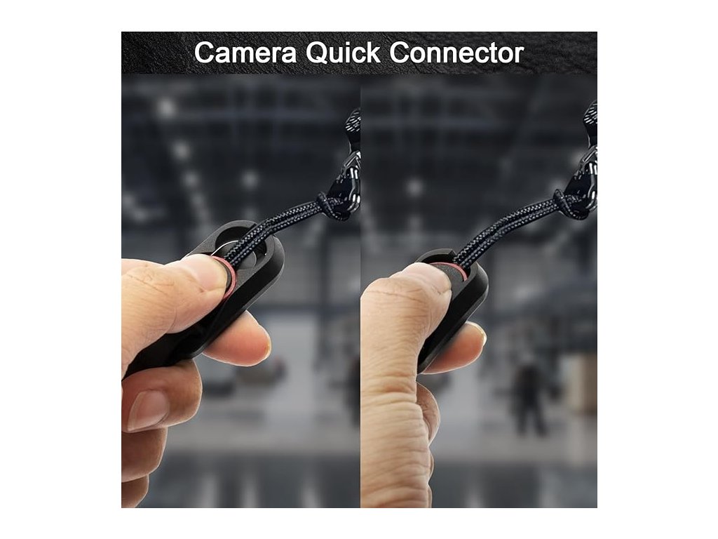 Bezpečné a rychlé uvolnění: Díky inovativnímu rychloupínacímu mechanismu zůstane váš fotoaparát pevně na svém místě, bez rizika sklouznutí nebo pádu, ať už fotíte z jakéhokoli úhlu. Stisknutím horní části rychloupínacího konektoru lze rychlospojku snadno nasadit a sejmout jednou rukou, což vám umožní okamžitě reagovat na dění kolem vás.