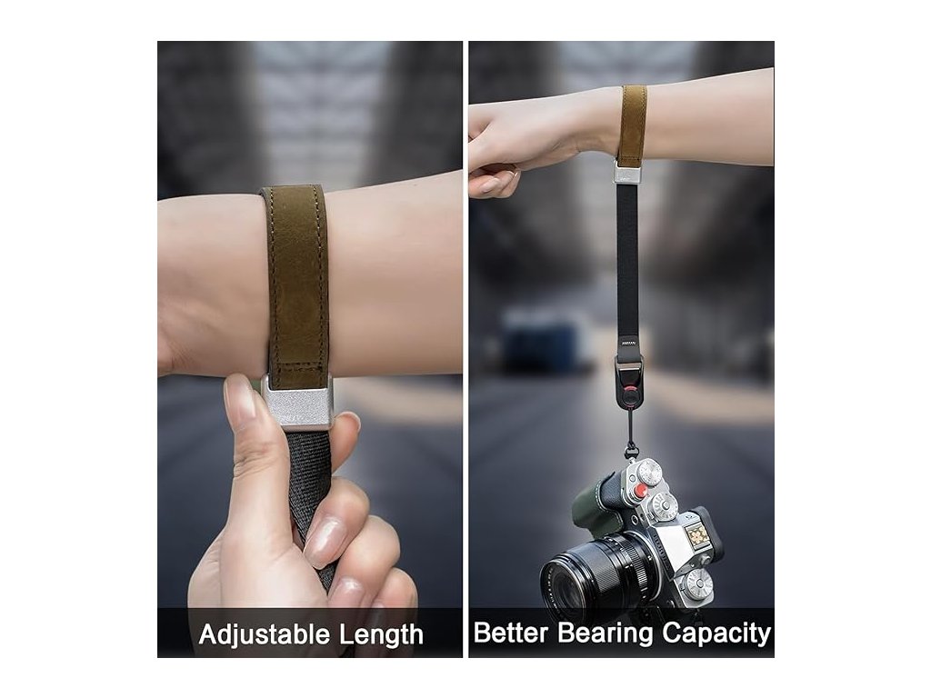 Lottsall řemínek na fotoaparát s rychloupínáním zajišťuje maximální bezpečnost a pohodlí. Je vyroben z kombinace měkkého nylonu a kůže, což zaručuje vynikající prodyšnost a absorpci vody. Díky kompaktnímu designu se dá nosit i jako náramek a je kompatibilní s většinou DSLR, bezzrcadlovek a kompaktních fotoaparátů.