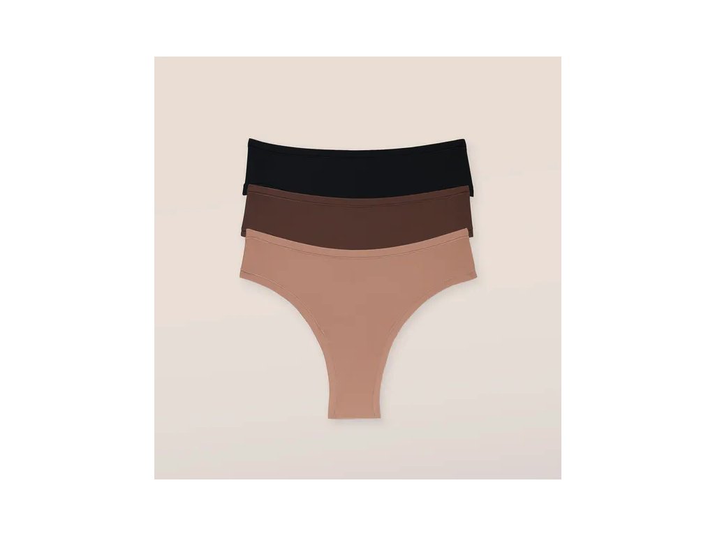 Konstrukce kalhotek využívá technologii ultra měkkých zahnutých švů v pase a u nohaviček, které zcela postrádají všité gumičky. Tričko je odborně sešito tak, aby se zabránilo viditelným přechodům pod přiléhavým oblečením (VPL). Brazilian střih poskytuje vyváženou míru zakrytí a díky poddajnému materiálu se dokonale přizpůsobí křivkám těla ve velikosti XL. Balení obsahuje tři kusy v různých tělových tónech pro všestranné využití.