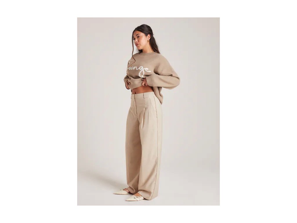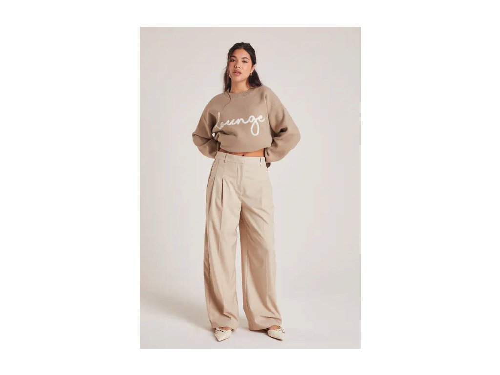 Společenské kalhoty Lounge v barvě Bread, který se vyznačuje širokým střihem nohavic a propracovanými detaily.
