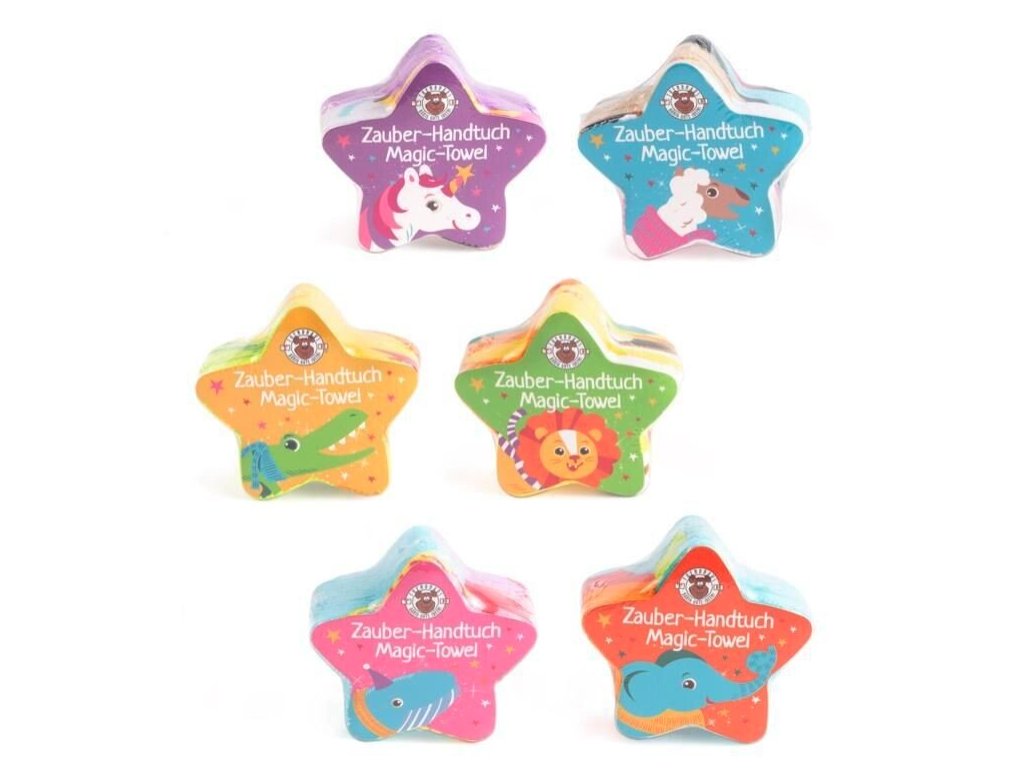 Magický ručník z kolekce Magic Moments přináší zábavný moment překvapení pro děti i dospělé. Ručník je dodáván v kompaktním lisovaném tvaru malé hvězdy. Po vložení do vody se během krátké chvíle rozvine do své plné užitné velikosti přibližně 30 x 30 cm. Tento proces vytváří unikátní vizuální efekt, který potěší každého obdarovaného.