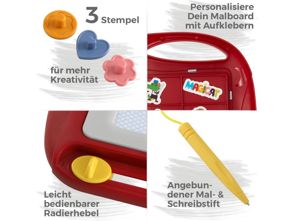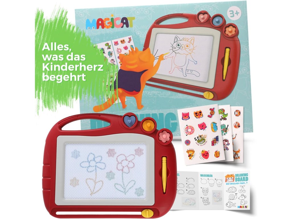 Kreativní malování bez nepořádku: Umožněte svému dítěti popustit uzdu kreativitě s magnetickou kreslící tabulkou Magicat. Je ideální pro rozvoj kreslících dovedností u dětí ve věku 3 až 6 let, a to bez použití papíru a barev, takže nevzniká žádný nepořádek.