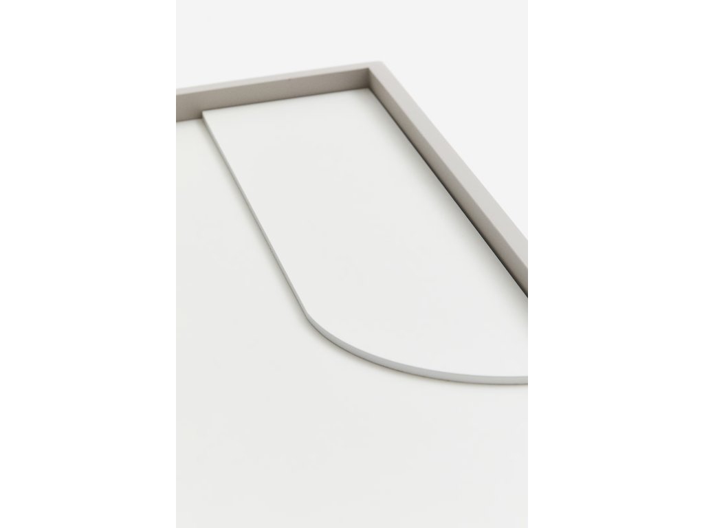 Malá nástěnná dekorace s abstraktním geometrickým vzorem. MDF deska, rozměry 30 x 40 cm. Kovové úchyty.