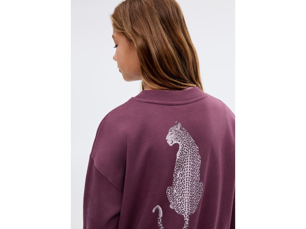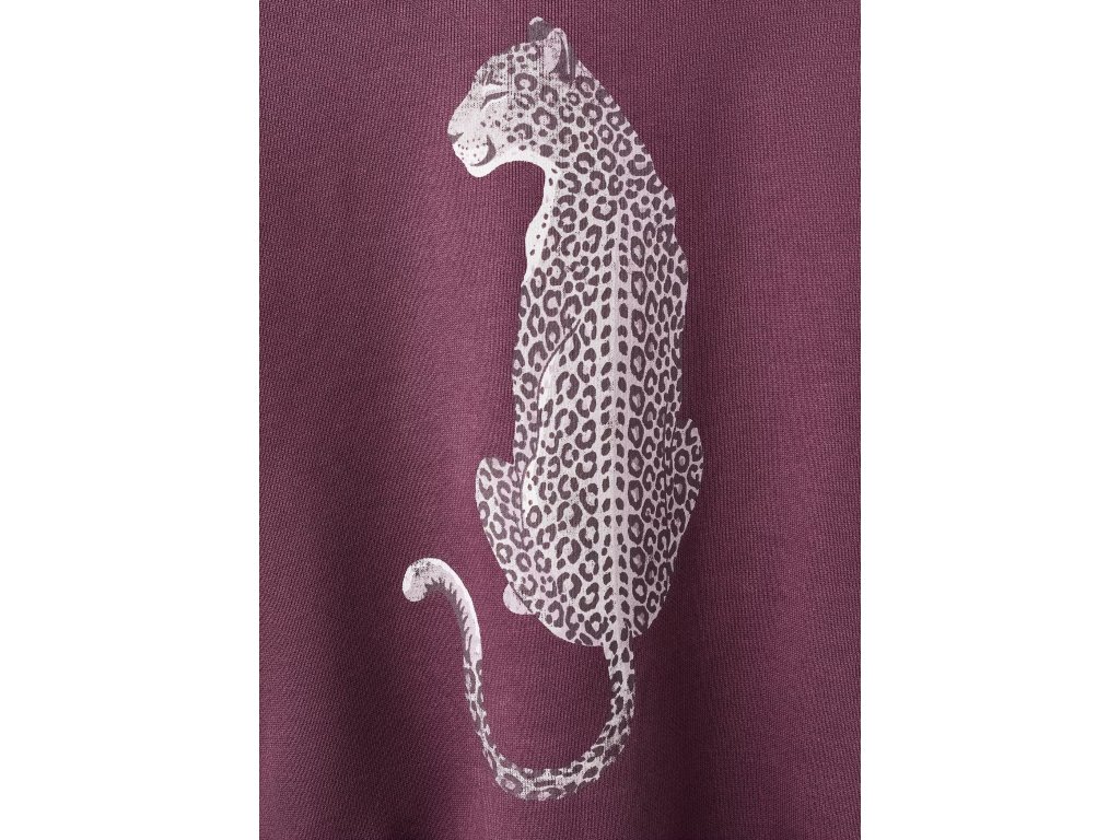 Model má kulatý výstřih, dlouhé rukávy a výrazný potisk na přední i zadní straně, doplněný o motivy inspirované zvířecími prvky. Díky hravému designu působí mikina moderně a zároveň dětsky hravě.
