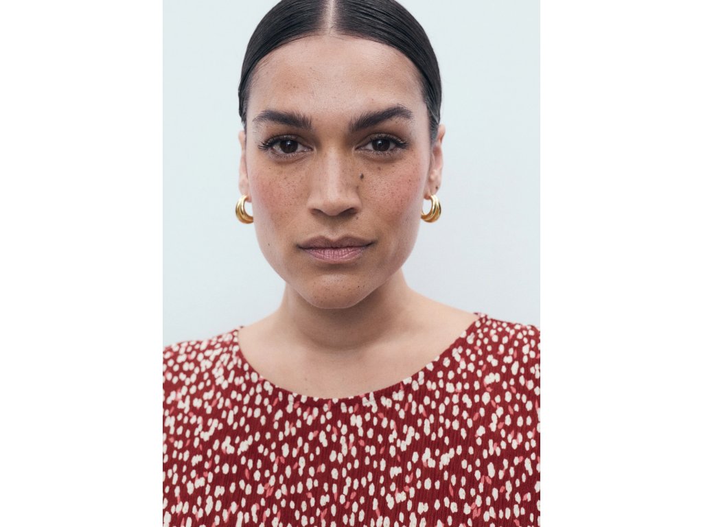 Detaily: Plisovaný design, boční rozparek
