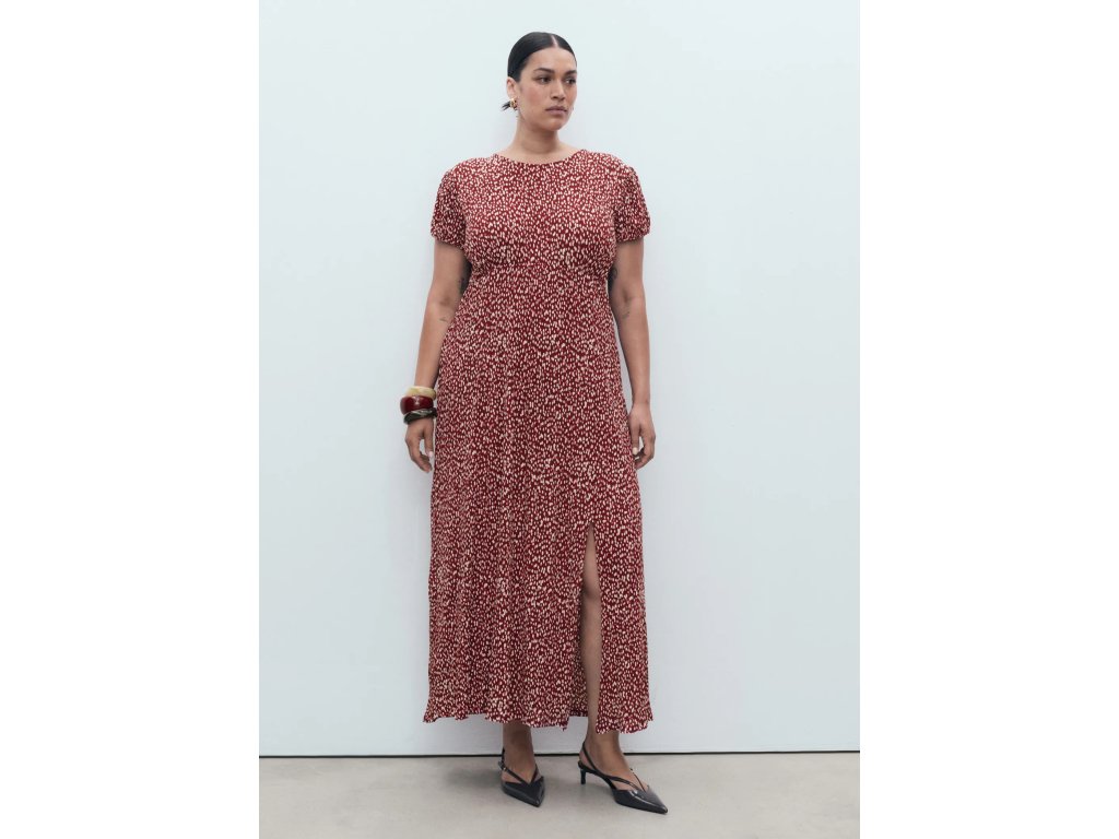 Stylové dámské šaty Mango z casual kolekce jsou navrženy pro pohodlné každodenní nošení. Šaty mají dlouhý rovný střih s plisovaným designem, který vytváří elegantní a vzdušnou siluetu.