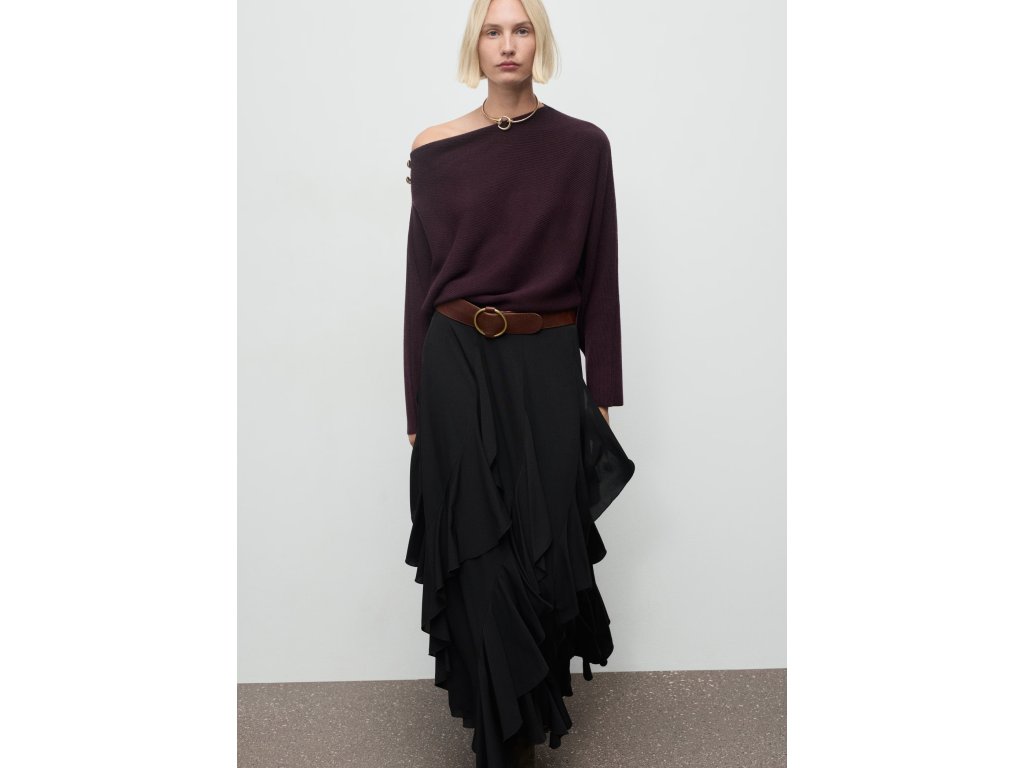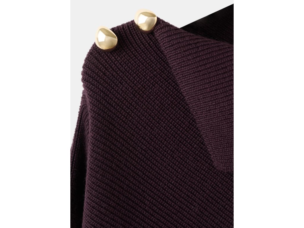 Mango Svetr s asymetrickým výstřihem a ozdobnými knoflíky – vínový, vel. M