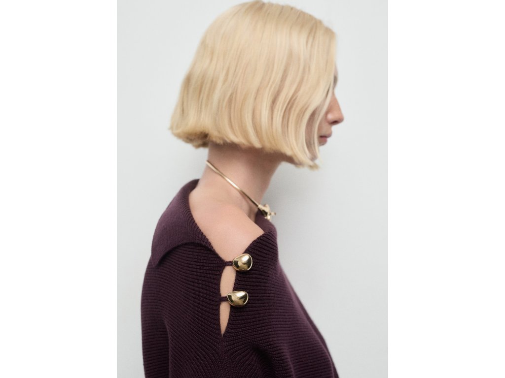 Dámský svetr Mango s asymetrickým výstřihem je moderní a elegantní kousek, který zaujme svým originálním designem. Díky asymetrickému výstřihu a ozdobným knoflíkům s efektem šperku na rameni působí svetr velmi stylově a dodává outfitu výrazný detail.