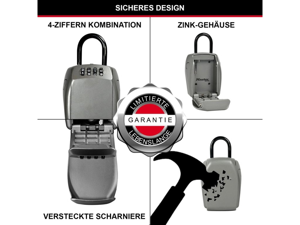Master Lock 5414D je volně stojící trezor na klíče vyrobený z odolného zinku. Poskytuje bezpečné místo pro uložení klíčů.