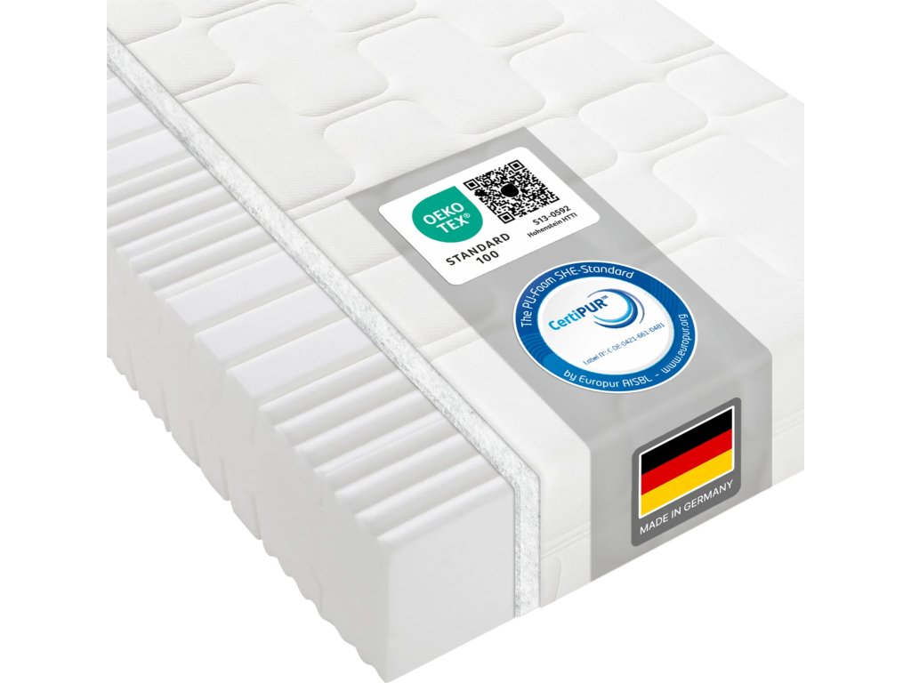 Tato matrace je vybavena inovativním jádrem ze studené pěny s různě hlubokými svislými zářezy, které vytvářejí 7 ergonomických zón. Hlubší zářezy v oblasti ramen umožňují jejich měkké zaboření, čímž předchází napětí. Naopak menší zářezy v bederní oblasti poskytují pevnou oporu a zmírňují bolesti zad. Otevřená a prodyšná struktura materiálu zajišťuje příjemné spánkové klima. Matrace je vhodná pro spánek na břiše, na zádech i na boku. Je navržena jako oboustranná, což prodlužuje její životnost. Potah z dvojité látky, prošitý prodyšným vláknem, je odnímatelný a lze jej prát na 60 °C. Díky celoobvodovému zipu se dá rozdělit na dvě poloviny a snadno se vejde do běžné pračky. Čtyři pevná madla usnadňují každodenní manipulaci. Matrace je vhodná i pro alergiky na prach. Jedná se o kvalitní produkt vyrobený v Německu.