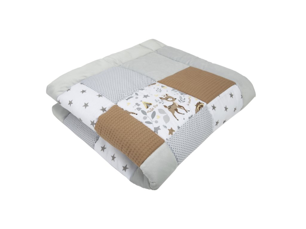 Tato multifunkční deka je skvělým doplňkem do dětského pokoje, obývacího pokoje nebo i na cesty. Lze ji využít jako podložku pod hrazdičku, místo pro odpočinek, nebo jako bezpečné a hygienické místo pro hraní kdekoli v domácnosti.