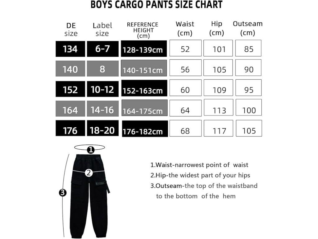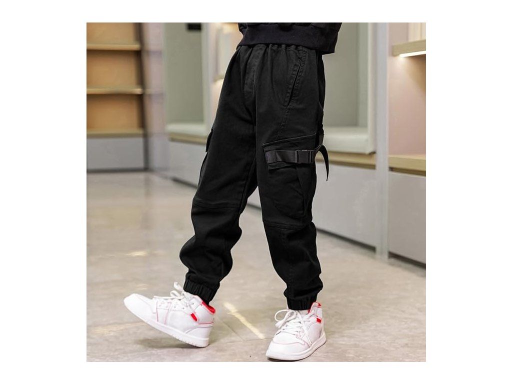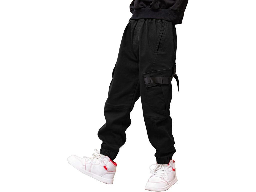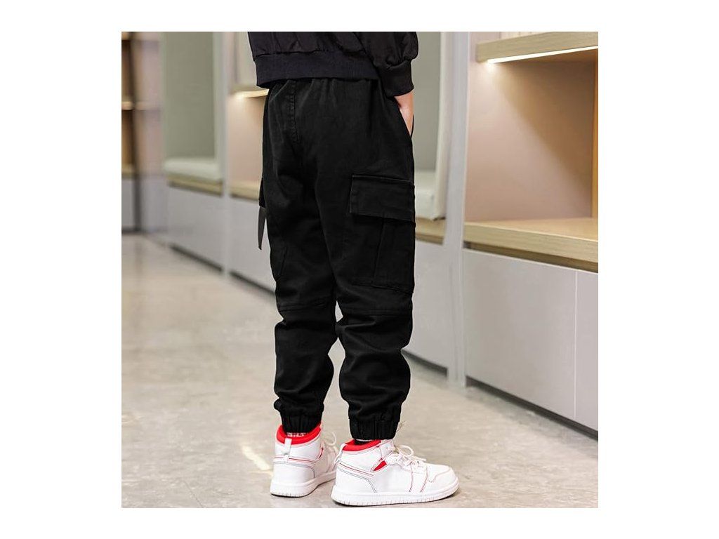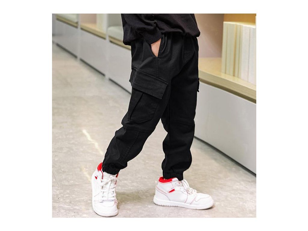 MEILONGER chlapecké cargo kalhoty – bavlněné jogger, černé, velikost 10–12 let