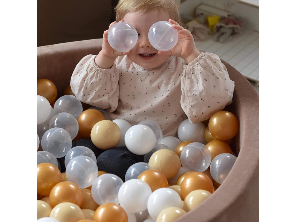 MEOWBABY měkká pěnová kulatá ohrádka 90x30 cm s 200 míčky. Bezpečná herní zóna pro miminka a malé děti. Béžová/bílá.