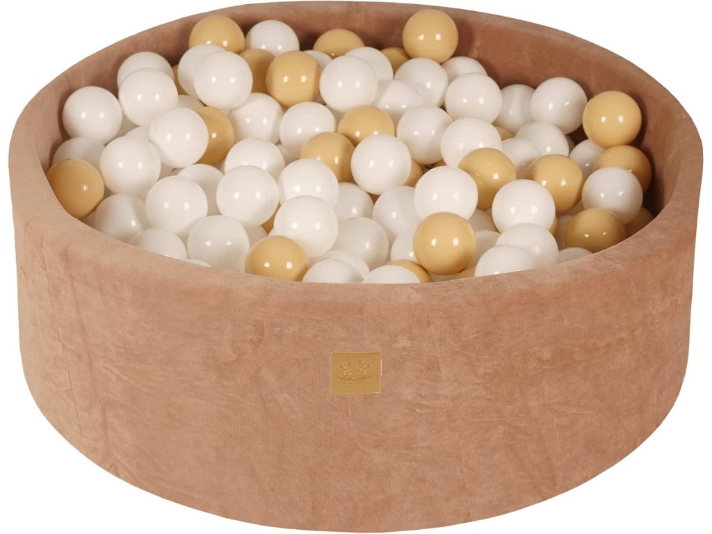 MEOWBABY Pěnová Ohrádka s Míčky Kulatá 90cm Béžová Bílá 200ks