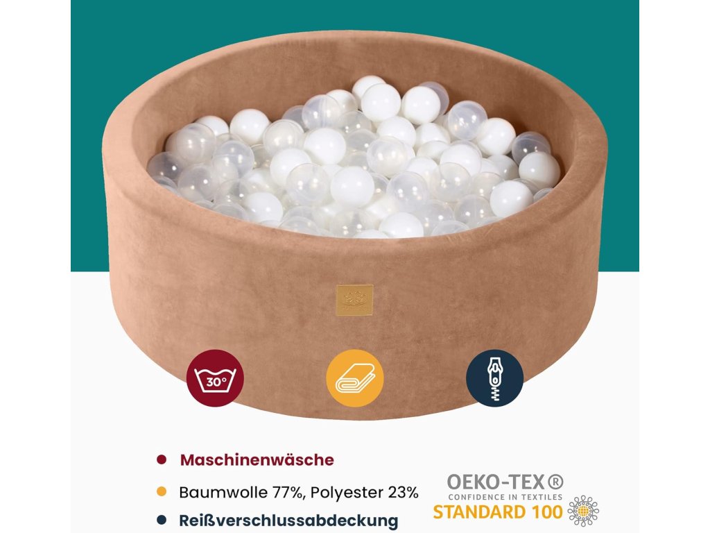 Dopřejte svým nejmenším bezpečnou a zábavnou hrací zónu s měkkou pěnovou kulatou ohrádkou MEOWBABY o rozměrech 90 x 30 cm. Tato ohrádka je dodávána s 200 barevnými míčky (béžové a bílé) a je vyrobena z odolného materiálu šetrného k dětské pokožce. Podporuje smyslový a motorický vývoj dětí a zároveň poskytuje pohodlné a bezpečné prostředí pro jejich hry. Živé barvy a textury míčků podněcují dětskou fantazii a kreativitu. Tato lehká a snadno přenosná ohrádka je ideálním dárkem pro rodiče, kteří hledají kvalitní a esteticky příjemné vybavení do dětského pokoje.