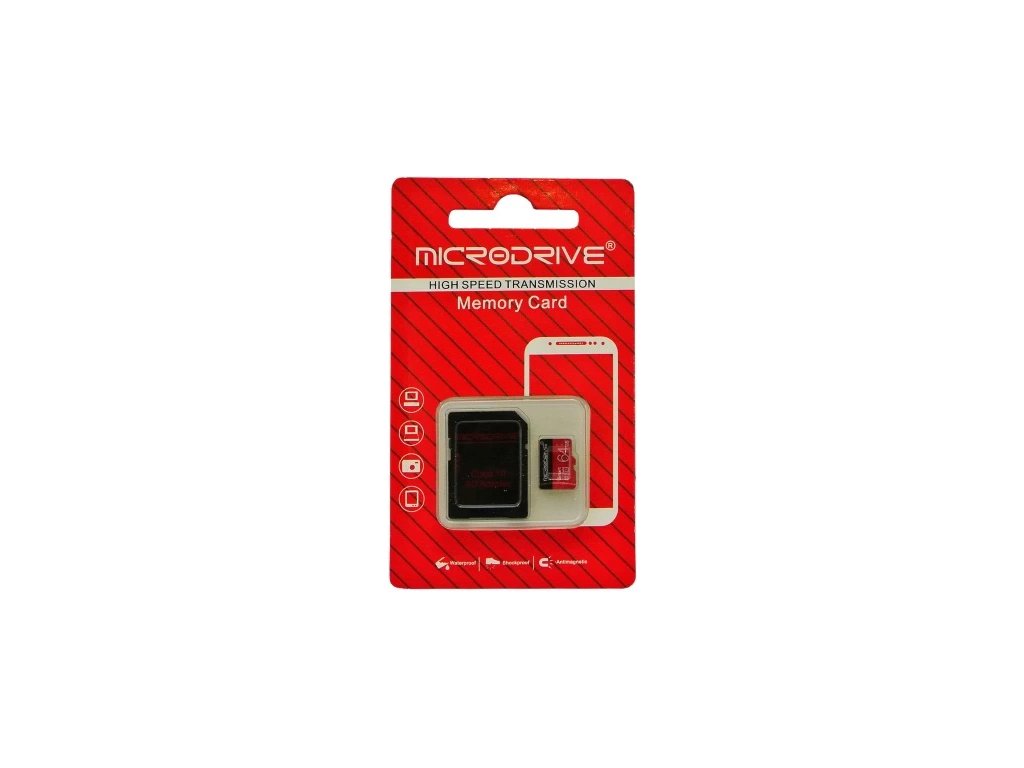 Paměťová karta Microdrive MicroSD 64 GB s rychlostí čtení 1 MB/s (Třída 2). Ideální pro fotoaparáty, smartphony a tablety. Spolehlivé úložiště pro fotografie, videa a aplikace. Černá barva, kompaktní a odolný design.