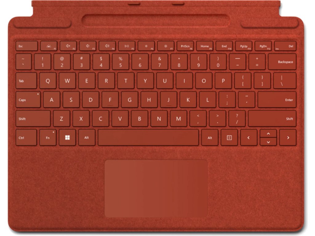 Microsoft Surface Pro Signature Keyboard (němčina) s touchpadem, úložným prostorem a nabíjením pro Surface Slim Pen 2. Kompatibilní se Surface Pro 8 a Pro X. Barva: červená.