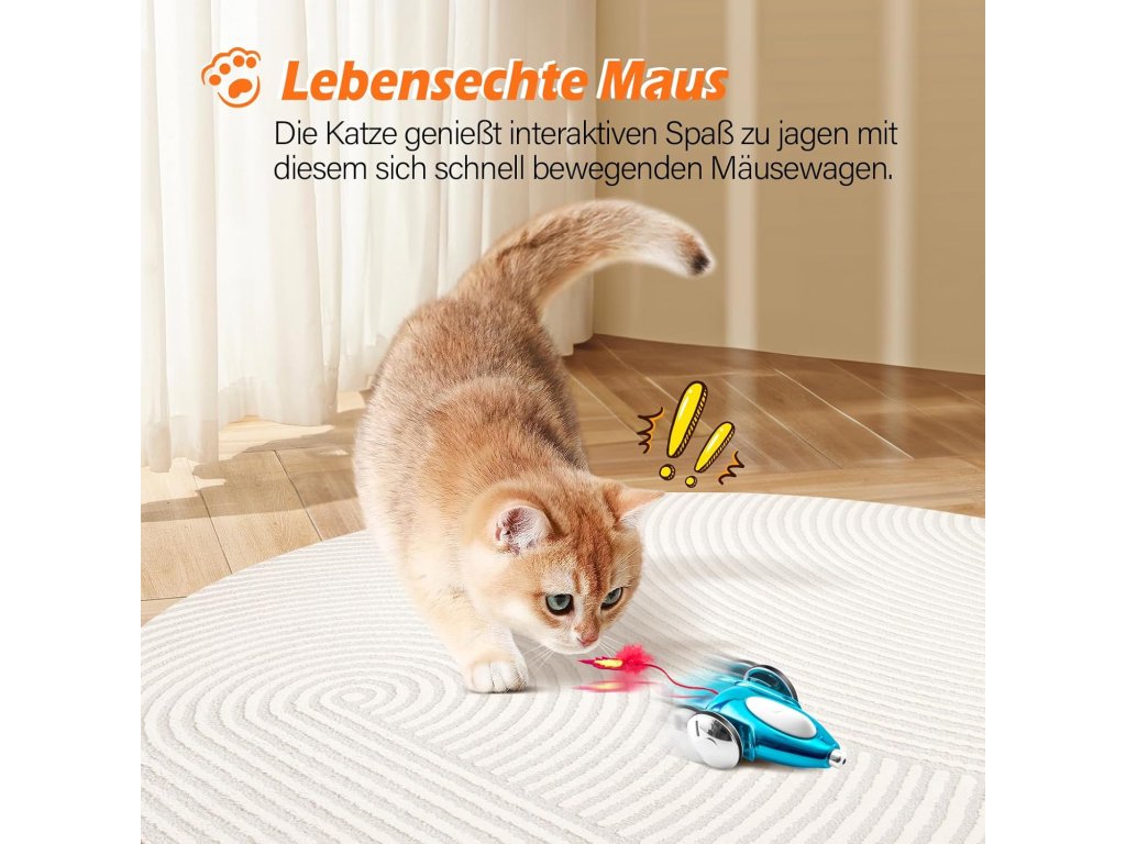 Migipaws inteligentní elektrická hračka pro kočky je navržena tak, aby probudila lovecké instinkty vaší kočky. Realistická myš s blikajícími neonovými LED světly a flexibilním ocasem upoutá pozornost každé kočky a podnítí ji k pronásledování, chytání a hře. Hračka se pohybuje náhodně dopředu a dozadu, čímž udržuje kočku v záběru a pomáhá jí zahnat nudu a udržet se aktivní. Inteligentní program zajišťuje automatický chod: 3 minuty pohybu, 4 minuty pauza a poté cyklus začíná znovu. V pohotovostním režimu se hračka aktivuje dotykem kočky. Dvě hladká a robustní kolečka s nízkou hlučností umožňují hračce pohybovat se po různých typech tvrdých podlah (mramor, dřevo, dlažba) i po krátkém plyšovém koberci. Hračka je vyrobena z bezpečných a odolných materiálů ABS a peří, takže je vhodná pro kočky, kocoury i koťata. Je dobíjecí, což zajišťuje dlouhodobou zábavu.