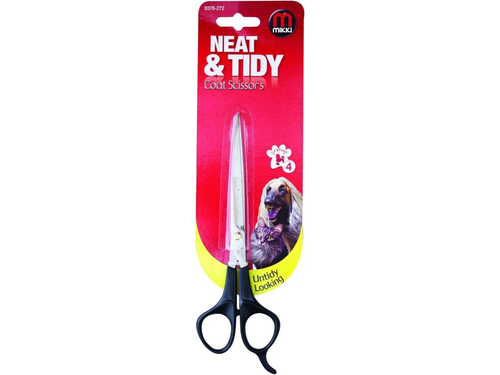 Nůžky Mikki Coat Scissors jsou nezbytným nástrojem pro pravidelnou péči o srst vašeho psa nebo jiného domácího mazlíčka a zajišťují že stříhání bude přesné a bezpečné. Velikost a provedení Jedná se o velkou variantu nůžek pro snadnější a efektivnější práci zejména u větších plemen nebo na rozsáhlejších částech těla. Nůžky jsou součástí řady Mikki neat and tidy což naznačuje jejich zaměření na přesné a čisté zastřihování.